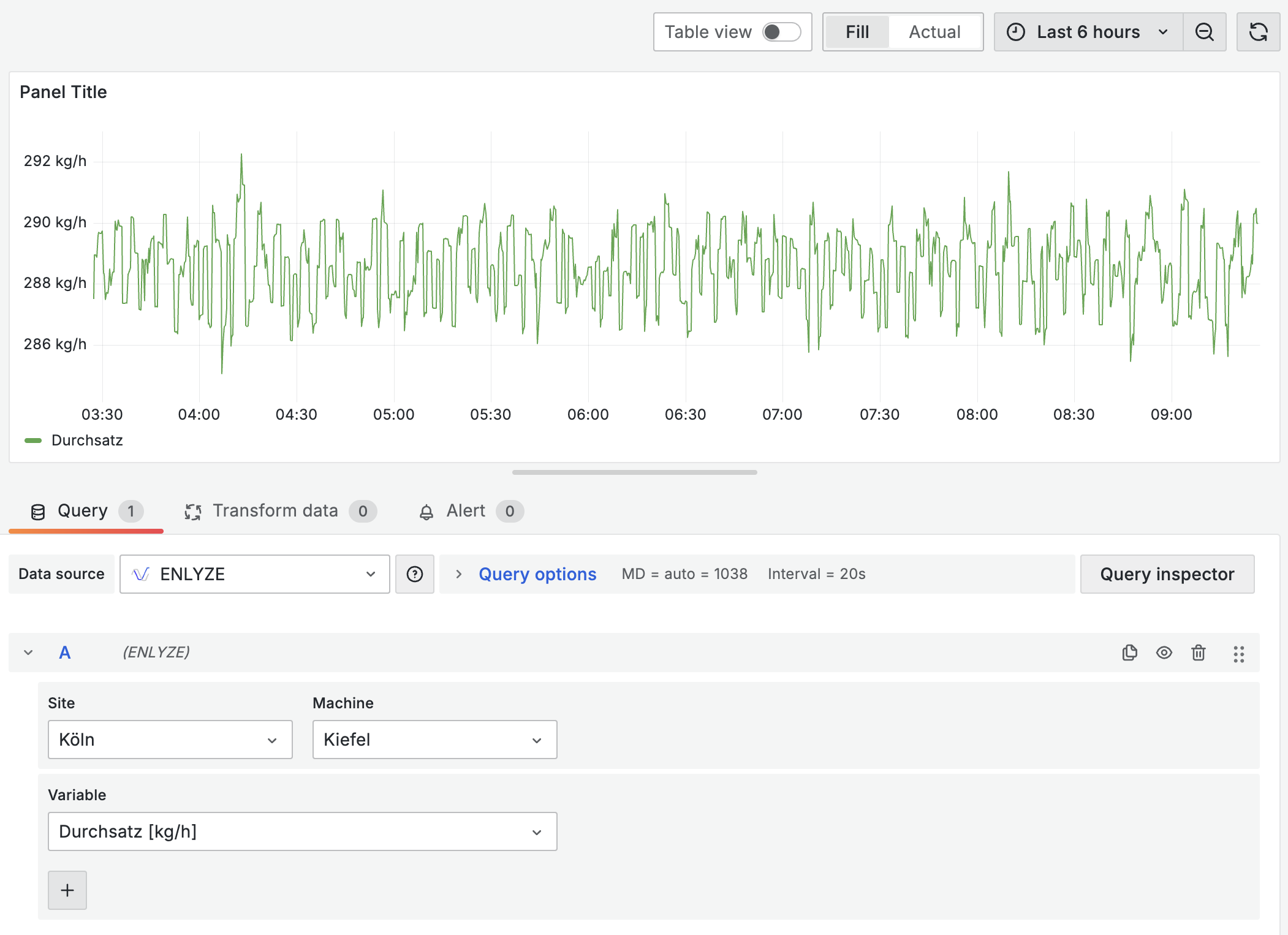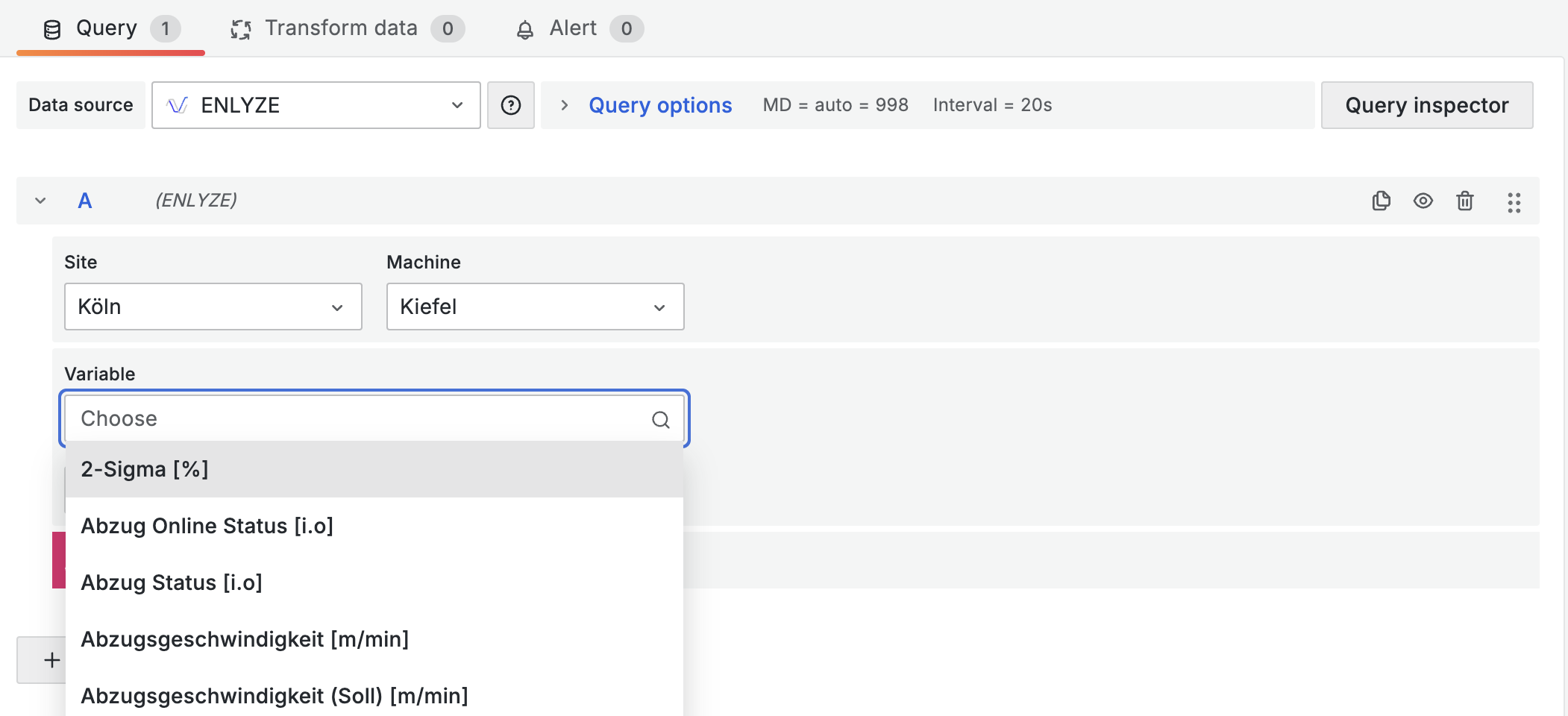 The ENLYZE data source uses a simple selection process: Site β Machine β Variables.