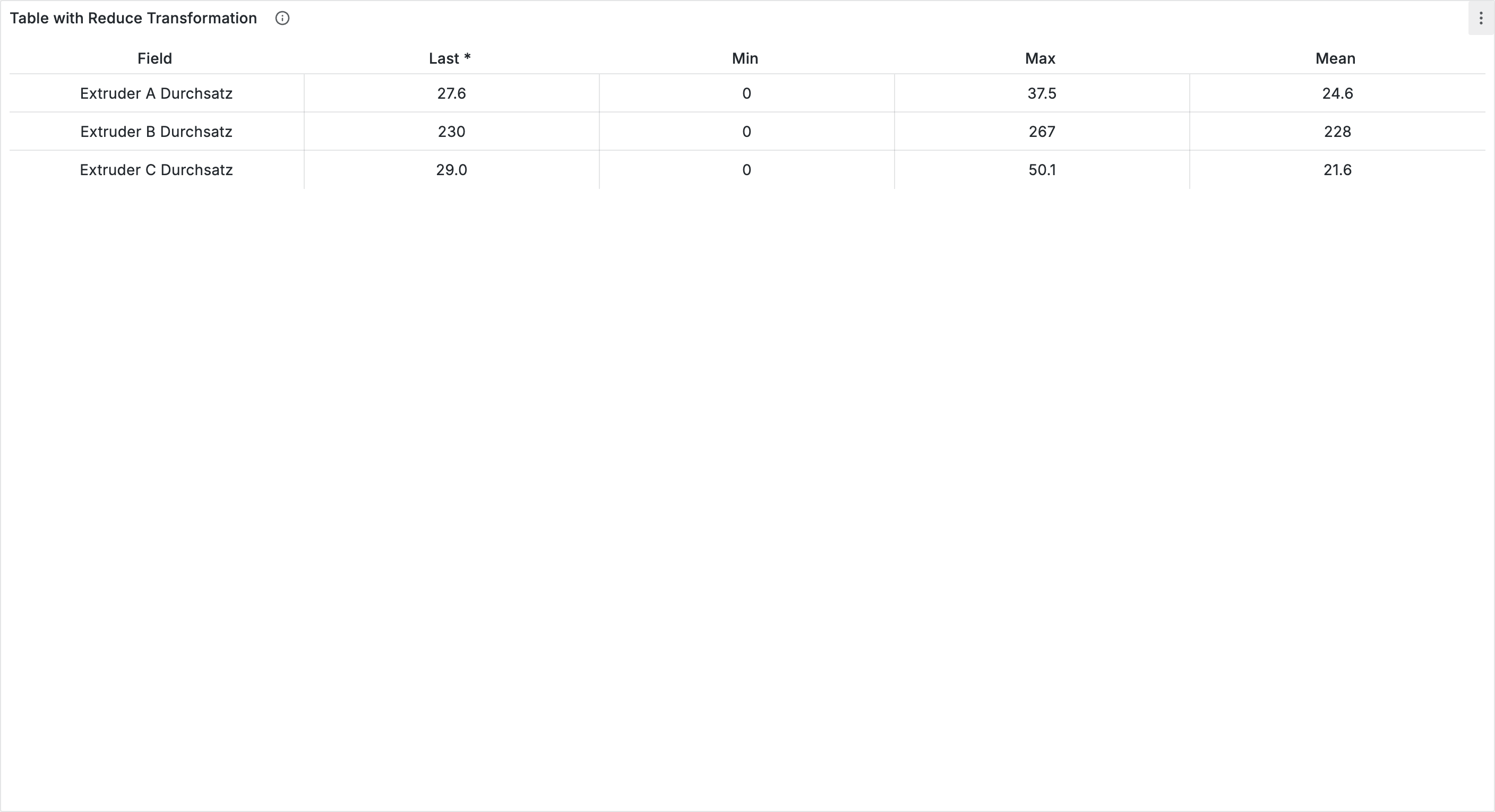 The Reduce transformation converts time series data into summary statistics β turning many data points into single values like Min, Max, Mean, and Last.