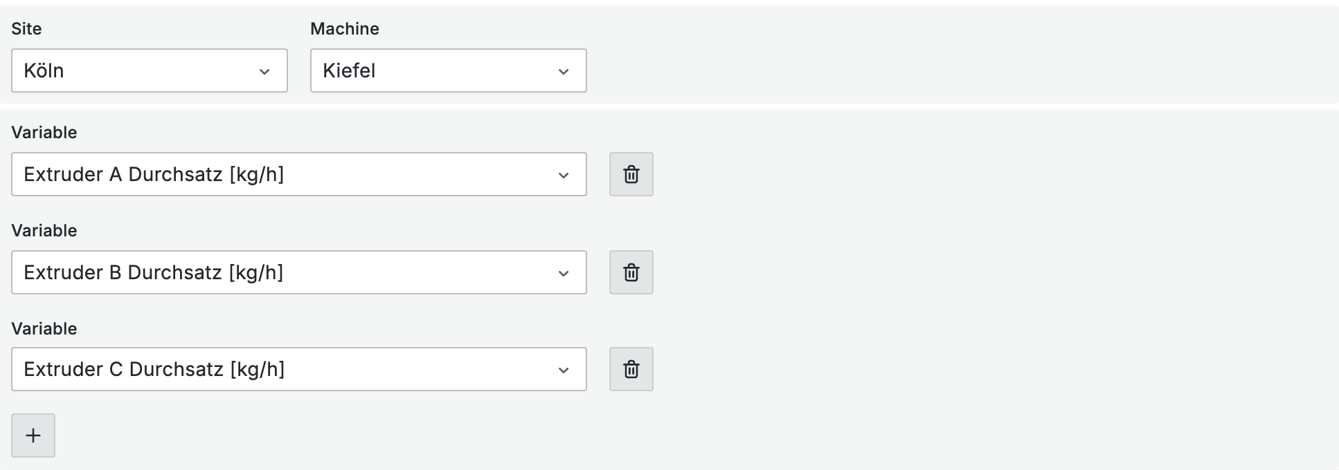 Select multiple variables (e.g., several extruder throughputs or temperatures)