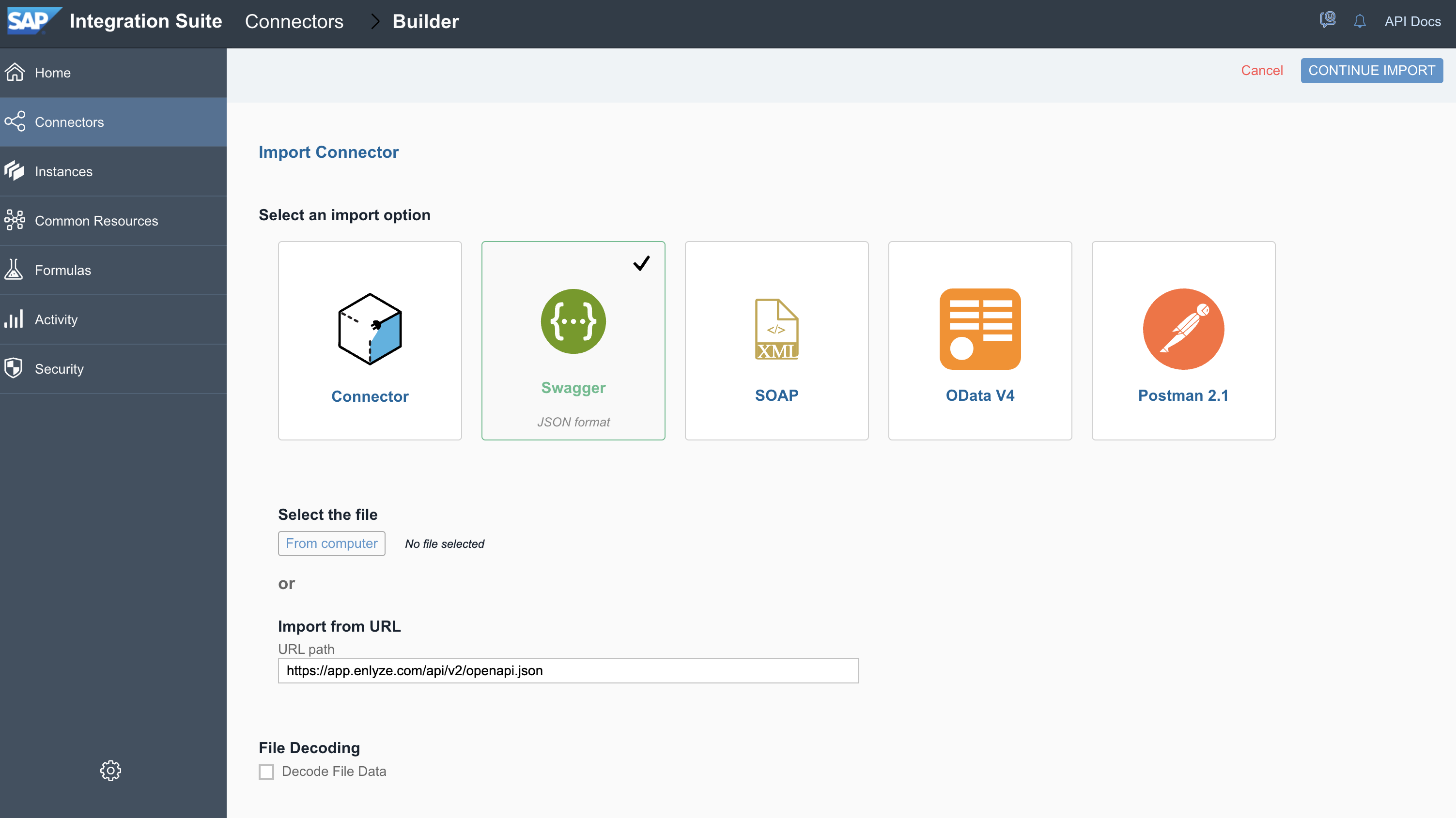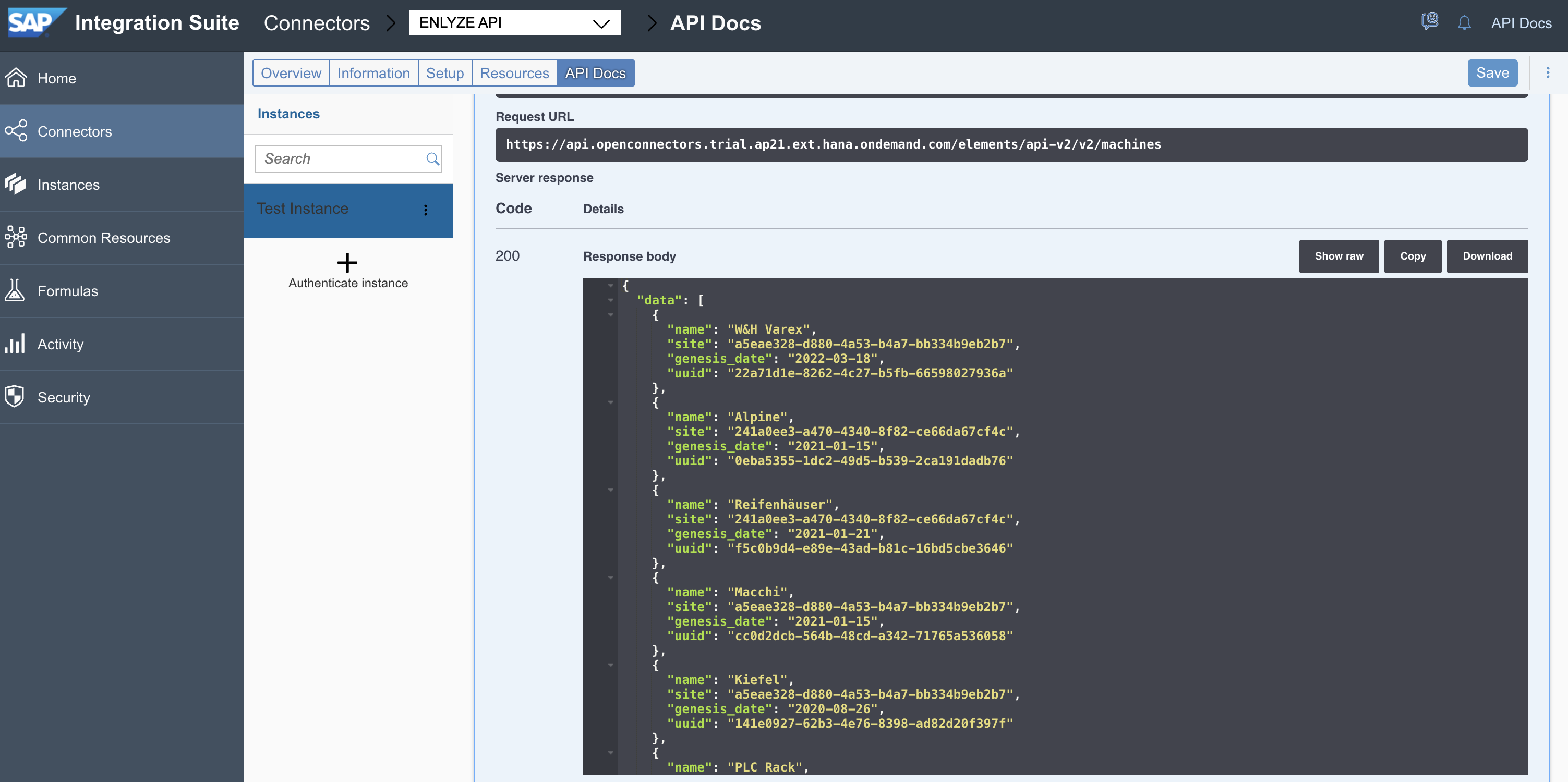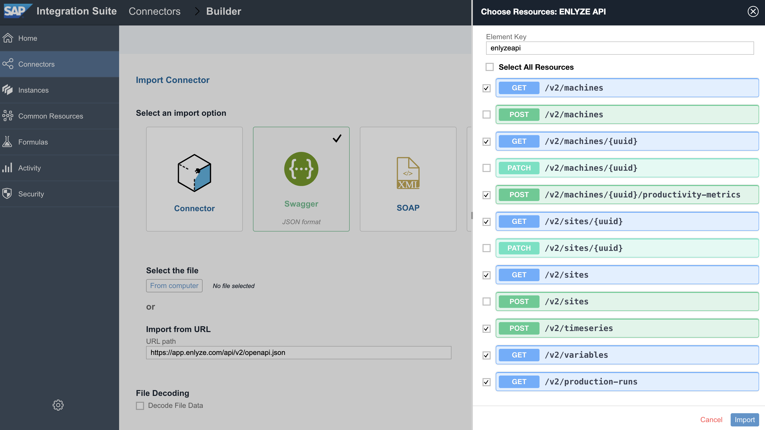 Build and test a custom connector in SAP Integration Suite for the ENLYZE Platform API