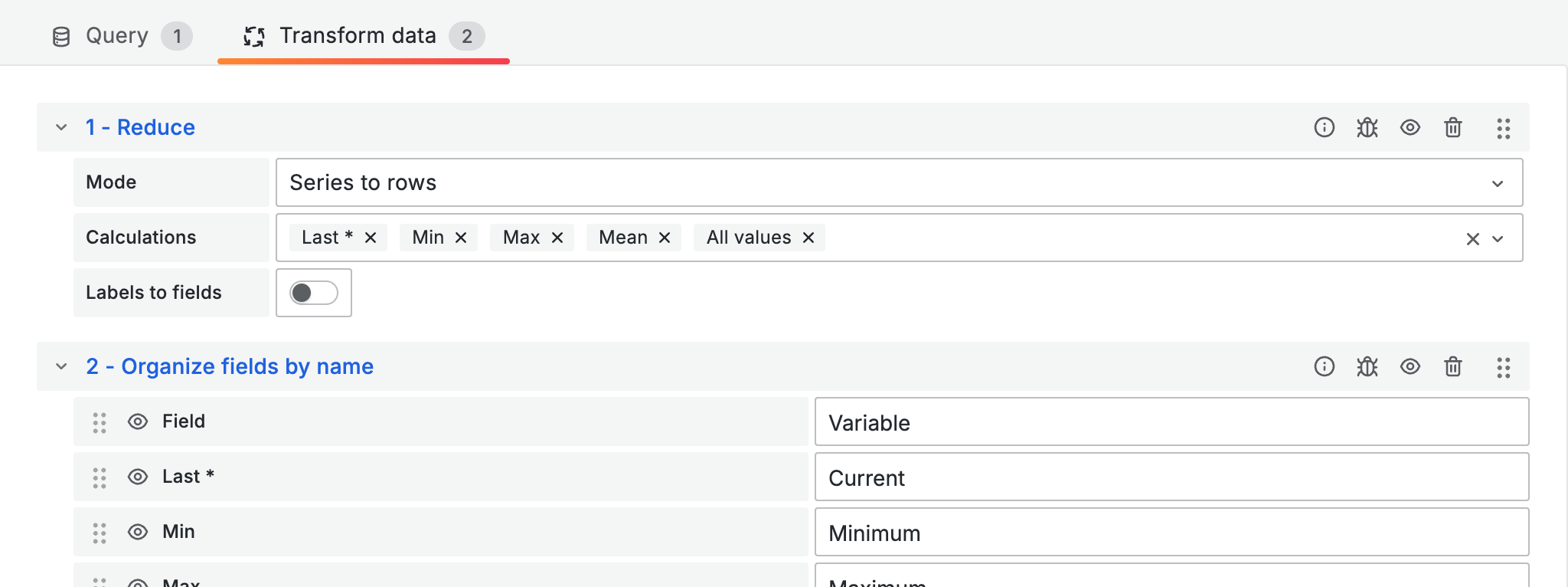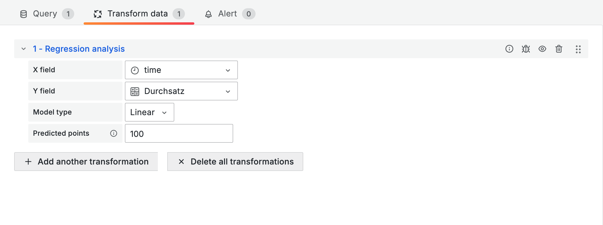 Klicke auf den Transform-Tab (zwischen Query und Alert)