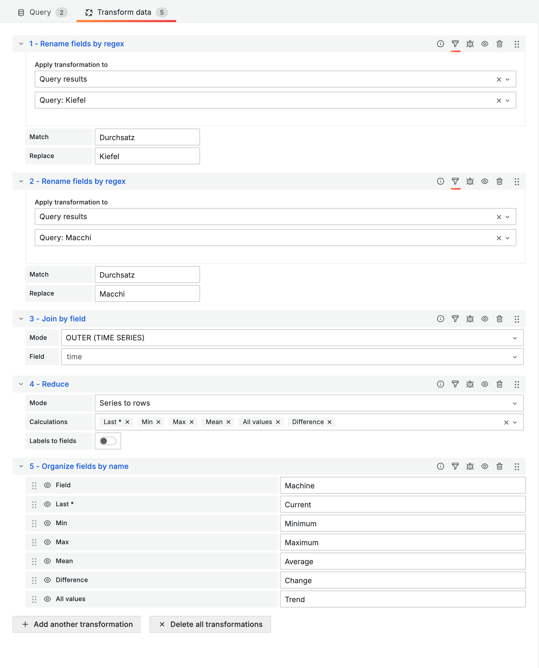 Transformationen bearbeiten Daten nach der Abfrage, aber bevor sie visualisiert werden. Damit lassen sich: