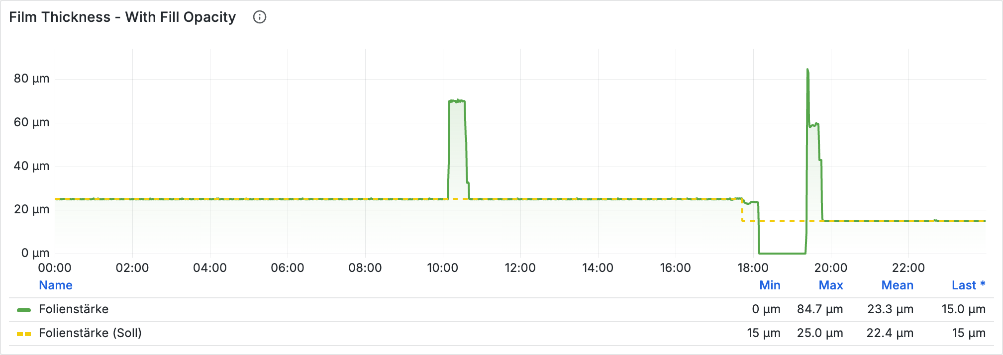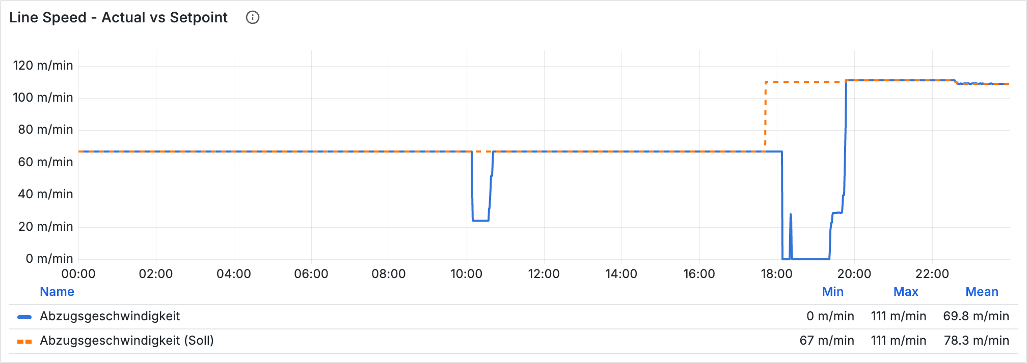 Wähle in deiner Abfrage sowohl die Ist- als auch die Sollwert-Variable (z. B. "Abzugsgeschwindigkeit" und "Abzugsgeschwindigkeit (Soll)").