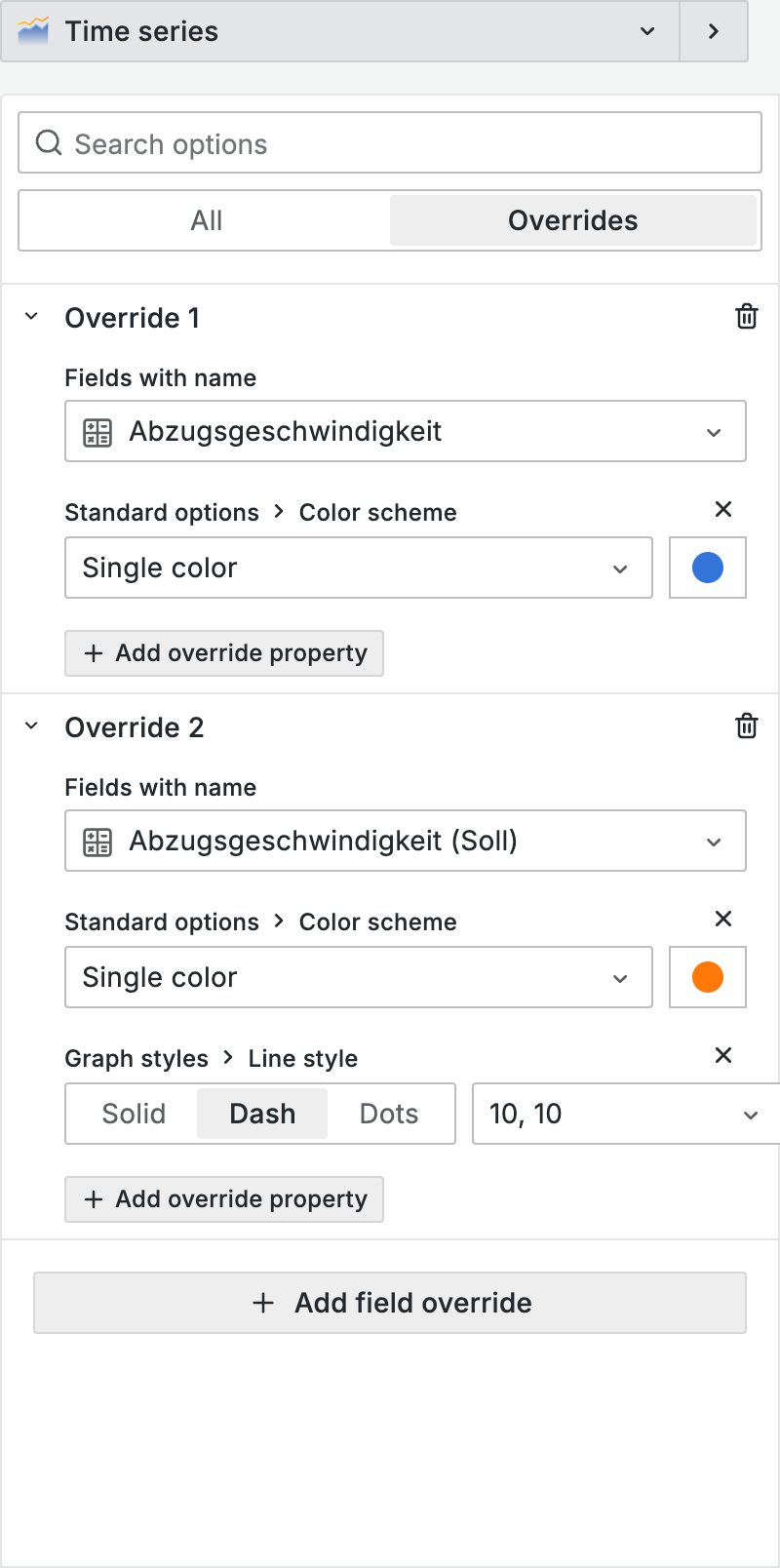 Mit Field Overrides gestaltest du jede Datenreihe individuell: