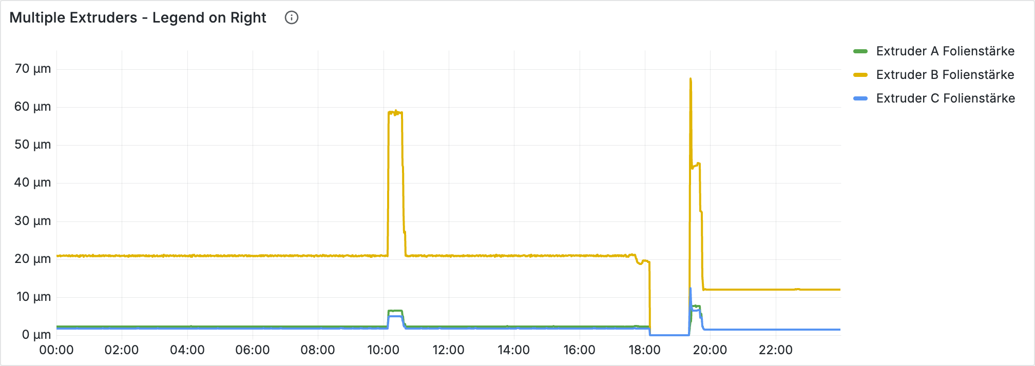 Alle ausgewählten Variablen erscheinen als separate Linien im Diagramm. Geeignet für den Vergleich verwandter Messwerte derselben Maschine (z. B. mehrere Temperatursensoren).