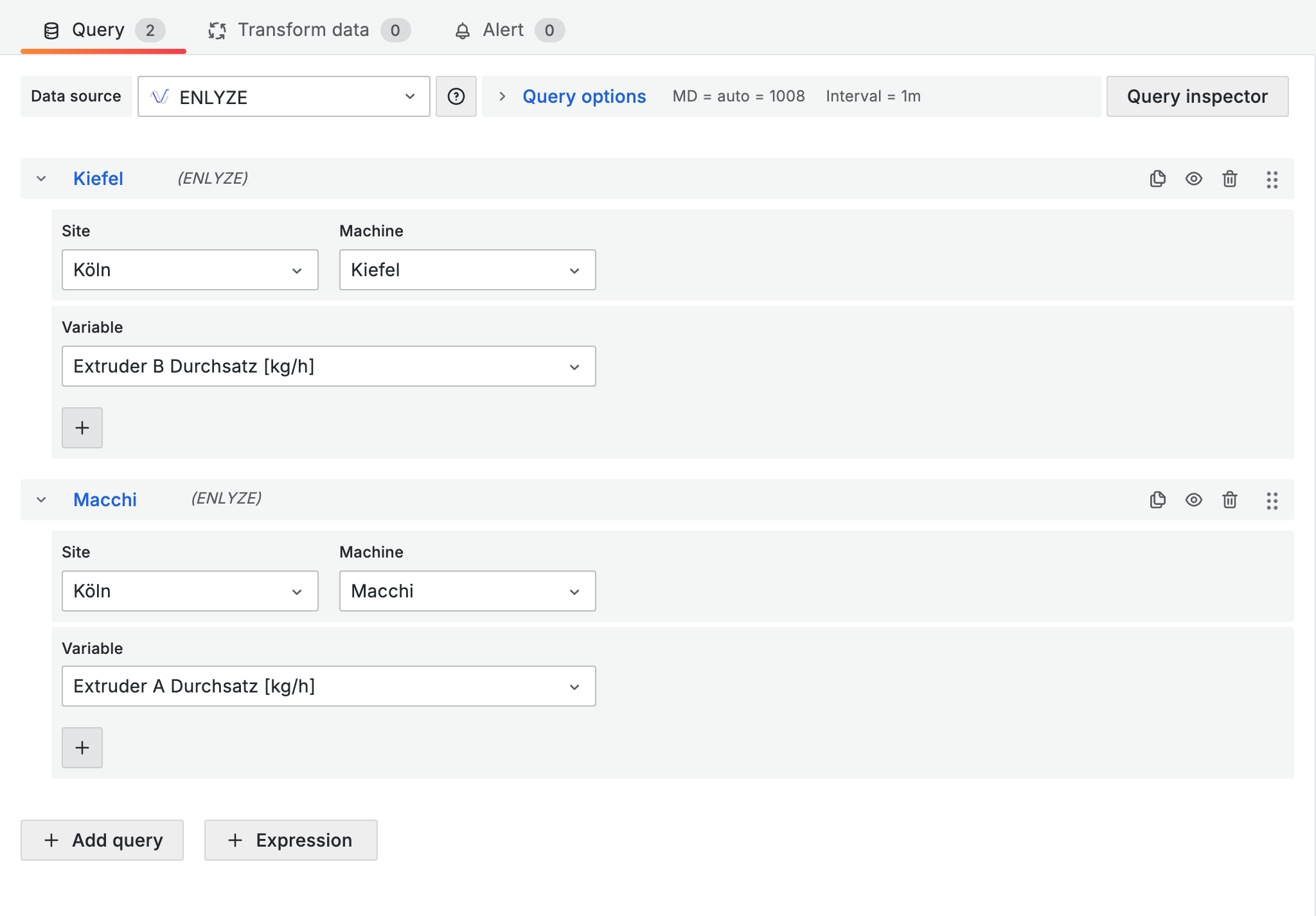 2. Konfiguriere die zweite Abfrage mit einem anderen Standort, einer anderen Maschine oder Variablen