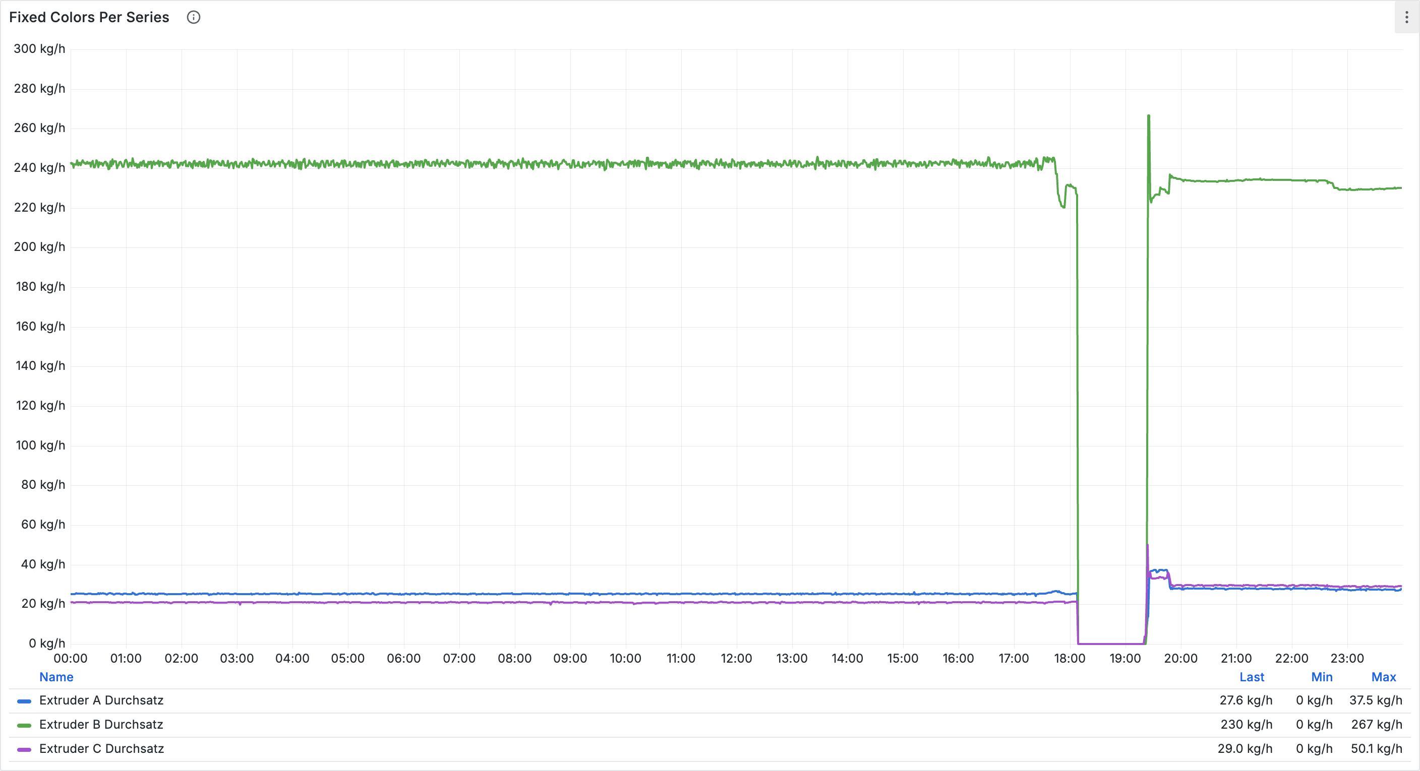 * **Einheitlichkeit**: Gleiche Farben für gleiche Metriktypen im gesamten Dashboard. Nicht kg/h und t/h mischen.