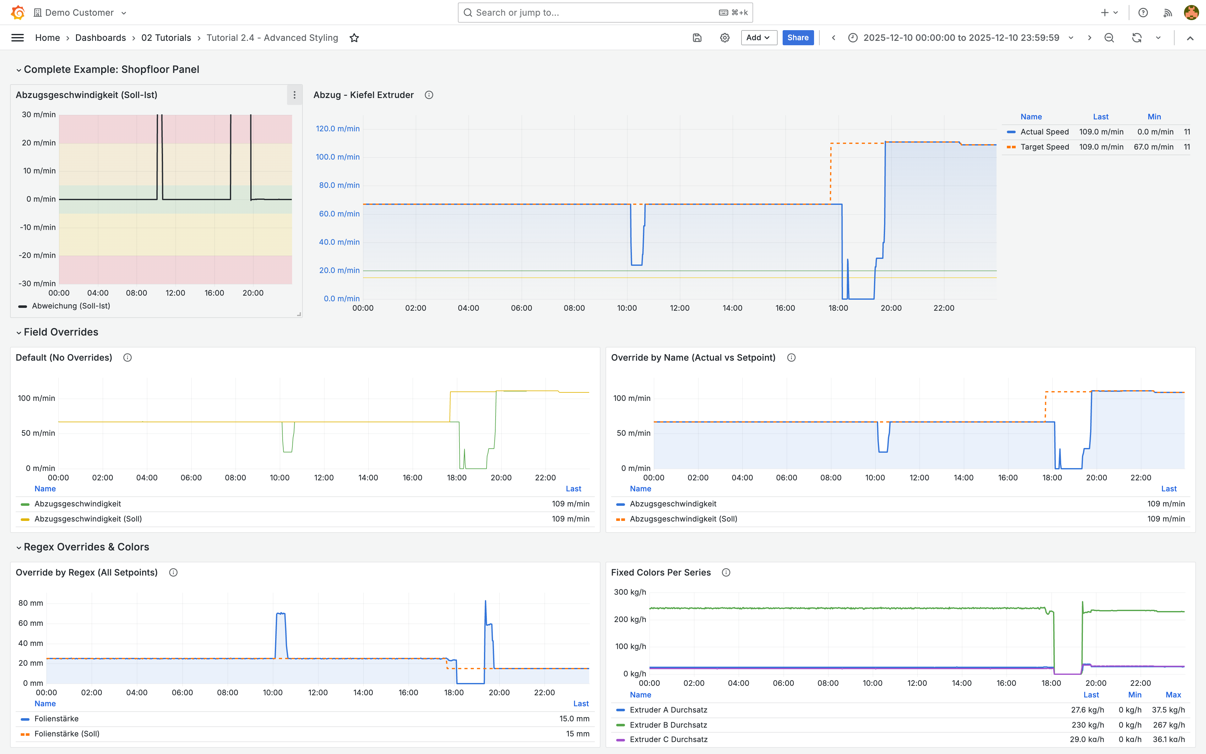 * **Regex-Overrides**: Nutze `.*\(Soll\)$`, um allen Sollwerten gleichzeitig dieselbe Farbe zuzuweisen.